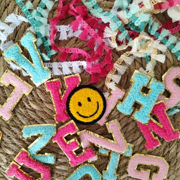 De naamsleutelhanger bestaat uit een mix van letterkralen, kralen van verschillende formaten en "statement" kralen als bijvoorbeeld hartjes, smileys en regenbogen. De tasjes worden voorzien van een lint met kwastjes (deze worden door de kinderen op de tasjes gestikt), voorzien van de beginletter van hun naam, uitgevoerd in een heerlijke teddystof, en gedecoreerd met tekeningen. Voor jongens kan er gekozen worden voor de stoere smiley.